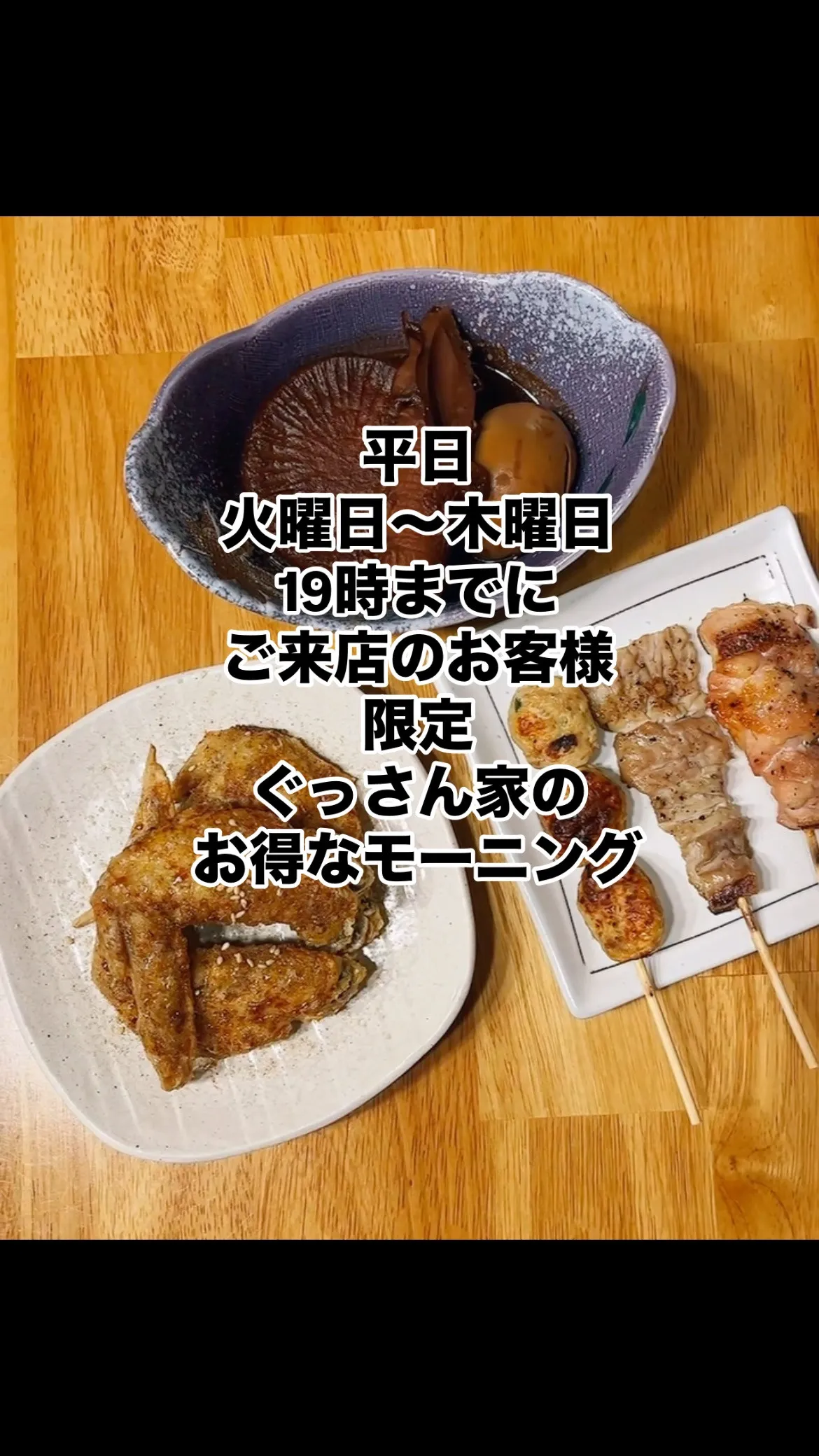 おかえりなさい。 おかえりなさい。宅飲み居酒屋ぐっさん家🏠です。平日がお得!!19時までにご来店のお客様、アルコールドリンクご注文で手羽先or焼き鳥orおでんがついてくる😊平日の早い時間、ぜひご来店ください。#石川#…